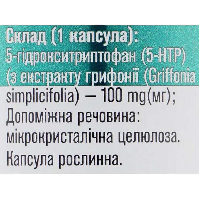 Зверніть увагу, що 5-HTP Грифонія 100 мг Голден-фарм 60 капсул не є лікарським засобом. Не замінює повноцінного харчування. Не перевищуйте рекомендовану добову дозу. Використовуйте згідно з інструкцією виробника, яка є на упаковці або всередині неї.