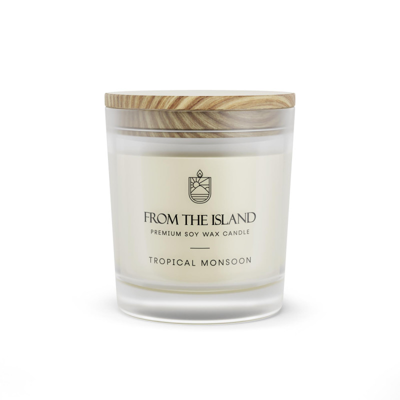 Ароматична свічка українського виробника From the Island з ароматом "Tropical monsoon", що вселяє думки про далекі тропічні острови, зачаровуючи соковитими ароматними відтінками. Свічка виготовлена з натурального соєвого воску, який є екологічно чистим, при горінні не виділяє шкідливих речовин і не коптить, а також сприяє довгому та рівномірному горінню. Дерев'яний гніт є екологічно чистим і безпечним, а також створює заспокійливий звук легкого потріскування, наповнюючи будинок унікальною атмосферою. Ароматична свічка створить навколо Вас неповторну атмосферу, наповнюючи будинок ароматом, настроєм та затишком, сприяючи релаксації та відпочинку. Вона освіжить повітря в будинку і може допомагати у нейтралізації неприємних запахів. Свічка виготовлена в прозорій матовій склянці (на 250 мл) з дерев'яною кришкою та дерев'яним гнітом. Стильний та фірмовий дизайн свічки From the Island додасть особливої нотки до Вашого інтер'єру або стане приємним подарунком для близьких.