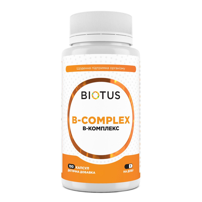 B-complex від Biotus створений для щоденного використання та включає повний спектр вітамінів групи B у відповідних дозуваннях.