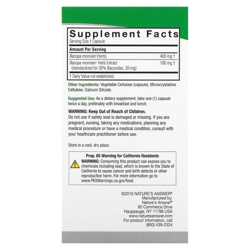 | Bacopa (Bacopa monnieri) Экстракт цельного растения (стандартизованный для 20% бакозидов) | 100 мг | † |