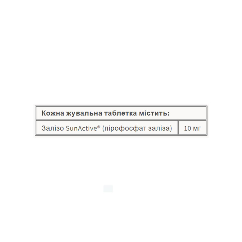 Містить 10 мг заліза для запобігання дефіциту заліза у дітей