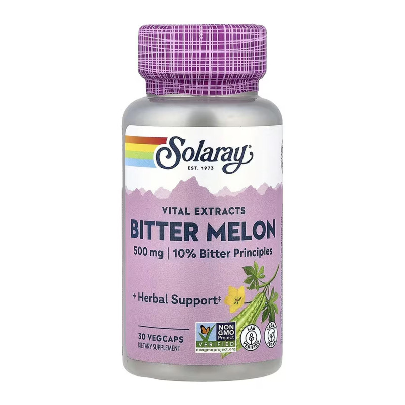 Solaray Bitter Melon Fruit Extract — це високоякісний екстракт гіркої дині (Momordica charantia), стандартизований на 10% гірких принципів, включаючи чарнантин. Кожна капсула містить 500 мг екстракту, що забезпечує ефективну підтримку нормального рівня цукру в крові та здорового метаболізму глюкози.