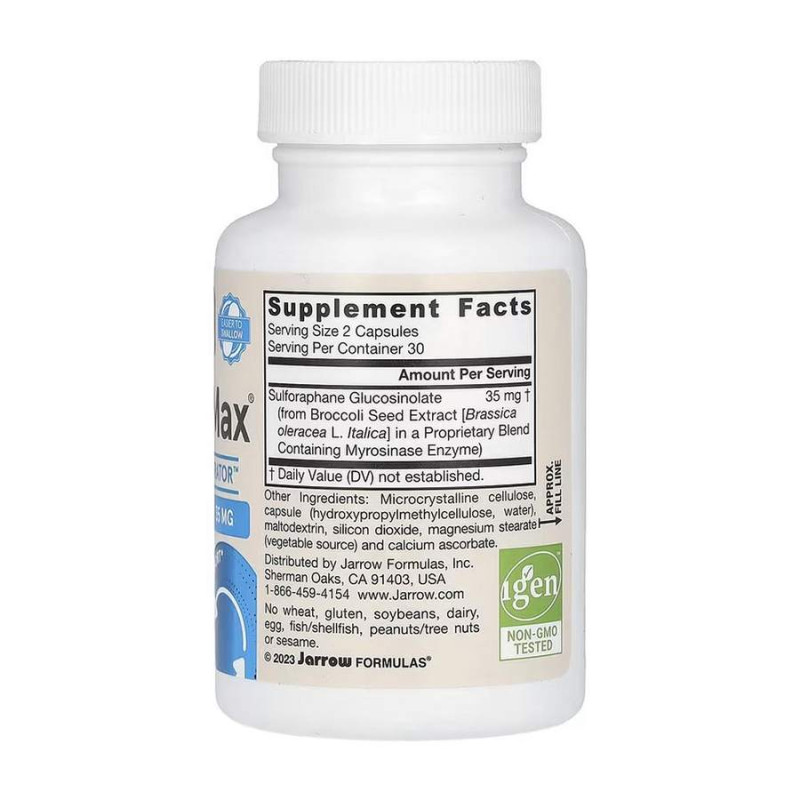 Екстракт насіння броколі від BroccoMax® Jarrow Formulas® містить активну мірозиназу, фермент броколі, що метаболізує сульфорафан глюкозинолат (СГЗ, також відомий як глюкорафанін) у сульфорафан у тонкому кишечнику*. Сульфорафан підтримує здорову реплікацію клітин і здоров’я печінки.