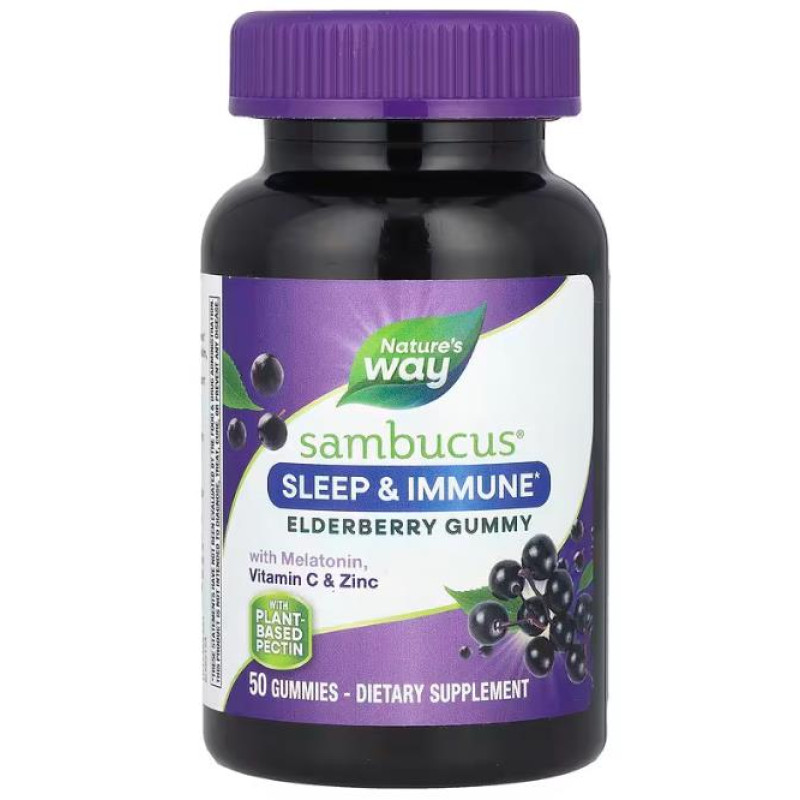 Основні переваги: Sambucus, Sleep + Immune with Melatonin & L-Theanine, Nature's Way, 50 жувальних цукерок