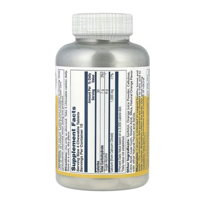 Обговорення: Кальцій призначений для підтримки здоров'я кісток і зубів. Мінерали в цьому продукті хелатовані з лимонною кислотою, що сприяє кращому засвоєнню в організмі. Наші жувальні таблетки з чудовим смаком розроблені з використанням суміші натуральних підсолоджувачів та ароматизаторів.