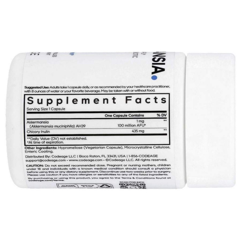 Codeage Akkermansia is a premium supplement that combines akkermansia muciniphila with chicory inulin, a fiber sourced from chicory root, for a balanced approach to daily supplementation. This formula provides 100 million AFUs of akkermansia probiotics per serving.