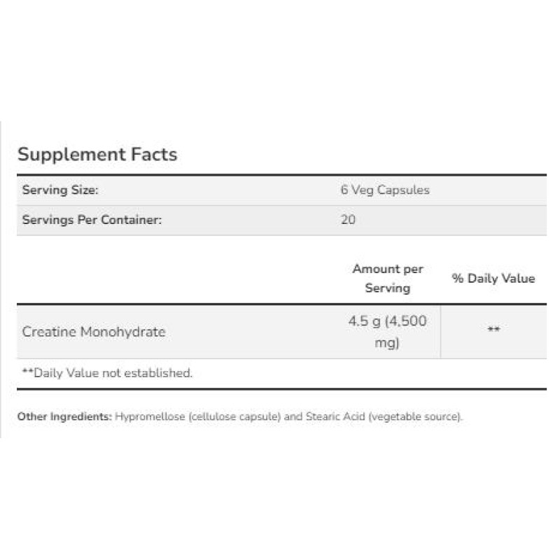 Нарощування маси/виробництво енергії Живлення м'язів Приріст сухої маси м'язів Informed-Sport.Com — нам довіряють спортсмени Дієтична добавка Сертифікат Trusted by Sport — Informed-Choice.Org Не містить стероїдів Веганський продукт Кошерний продукт Без ГМО Виготовлено на підприємстві, що має реєстрацію належної виробничої практики (GMP) Креатин — це сполука, яка природним чином зустрічається в організмі, насамперед у скелетних м'язах. Функція креатину у тому, щоб бути попередником аденозинтрифосфата (АТФ), форми хімічної енергії, використовуваної усіма клітинами. Запаси креатину в організмі створюють запас доступної АТФ для отримання енергії, яка необхідна для швидкого збільшення потужності й сили. Дослідження довели, що прийом добавок з креатином може допомогти підтримувати здоров'я м'язової тканини, підтримувати ріст і розвиток м'язової маси та сприяти оптимальній продуктивності під час коротких інтенсивних вправ. Моногідрат креатину компанії NOW® не містить добавок чи консервантів. Рекомендації із застосування Змішайте 6 капсул з фруктовим соком або іншим солодким напоєм, вживайте 3–4 рази на день перед тренуванням або після нього впродовж перших 7 днів. Далі для підтримувальної дії вживайте 6 капсул 1–3 рази на день. Між прийомами має проходити 3–4 години. Після 28 днів використання продовжуйте приймати одну порцію (6 капсул) щодня. Під час використання цього продукту вживайте достатню кількість рідини. Інші інгредієнти Гіпромелоза (целюлозна капсула) і стеаринова кислота (рослинного походження).
