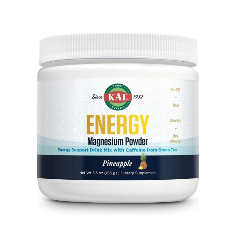 Порошок магнію KAL Energy розроблений для забезпечення здорового вибуху енергії з кофеїном із зеленого чаю, а також для підтримки функції нервів, здоров'я серця, м'язів та кісток.