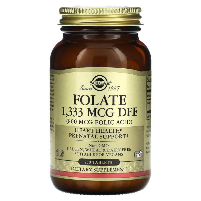 Основні переваги: Folate, Solgar, 1,333 мкг DFE (800 мкг), 250 таблеток