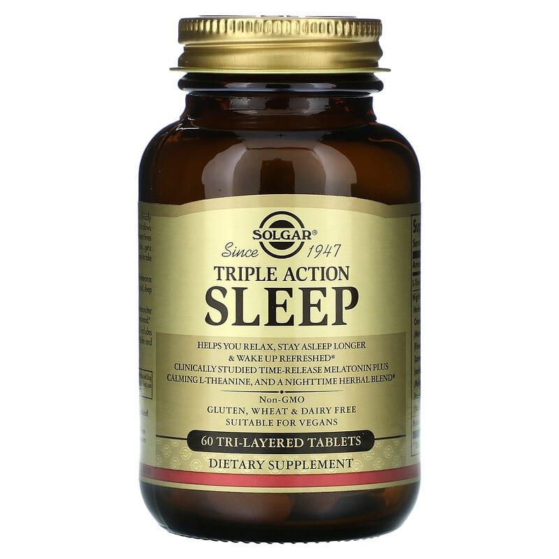 Основні переваги: Sleep, Solgar, потрійної дії, 60 тришарових таблеток