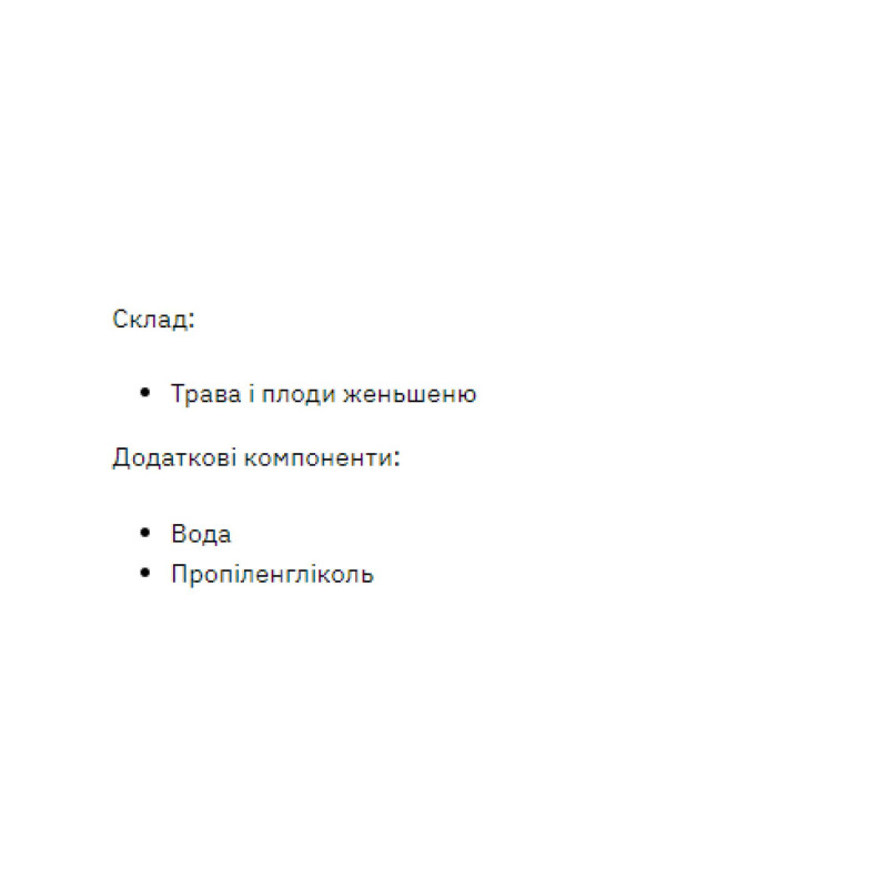 Спрей Stark Pharm — Stark Ginseng Liquid Extract — женьшень («корінь життя») являє собою багаторічну трав'янисту добре відому лікарську рослину. Загалом використовується як адаптоген і як загальнотонізувальний лікарський засіб. У Кореї та Китаї корінь женьшеню також використовують у приготуванні їжі. Традиційна китайська медицина стверджує, що препарати женьшеню продовжують життя і молодість.