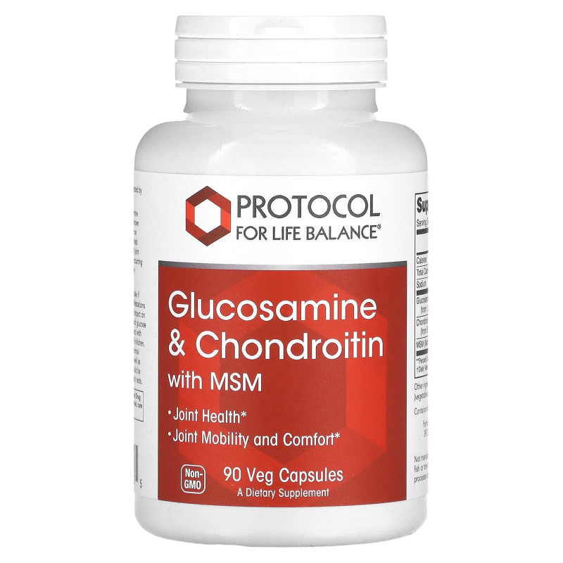 Склад: Glucosamine & Chondroitin with MSM, Protocol for Life Balance, підтримка суглобів, 90 капсул