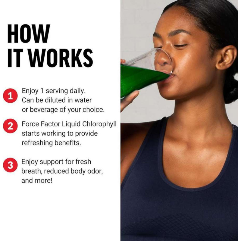 Chlorophyll Liquid від Force Factor – це натуральний рідкий хлорофіл з м’ятним смаком, який допомагає детоксикації організму, підтримує здоров’я шкіри та травлення, а також сприяє насиченню клітин киснем.