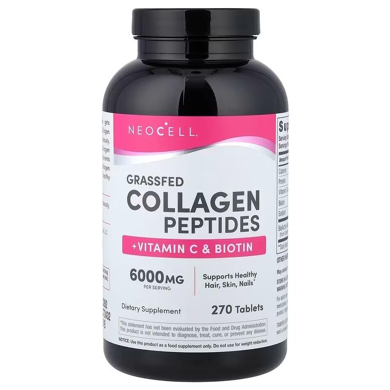 NeoCell Super Collagen + Vitamin C & Biotin виготовлений з гідролізованого яловичого колагену трав'яної відгодівлі та розроблений з метою зберегти або повернути здоров'я волосся та красу шкіри та нігтів. Старіючи, наш організм поступово втрачає колаген. Внаслідок цього виникає безліч різних ознак старіння.