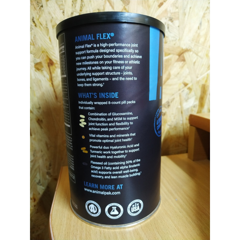 Animal Flex працює, допомагаючи зміцнити суглоби та зв'язки, захищаючи їх від щоденного зношування, викликаного інтенсивними тренуваннями. Інгредієнти Animal Flex допомагають підтримувати здорову функцію суглобів, їх еластичність та гнучкість. Багато активних інгредієнтів Animal Flex забезпечують основні будівельні блоки, необхідні підтримки структурної цілісності людини.