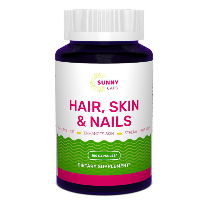 Hair, Skin & Nails Complex від Sunny Caps – це інноваційний продукт, створений для тих, хто дбає про здоров'я свого волосся, шкіри та нігтів. Комплекс поєднує біотин, вітаміни E, B5, B6, мінерали цинк та екстракт сухого проса, що робить його надійним вибором для природної турботи про красу. Ці елементи, включені у формулу, спрямовані на комплексне вирішення проблем здоров'я кератинових структур та шкіри. Підходить для широкої аудиторії, включаючи підлітків та дорослих.