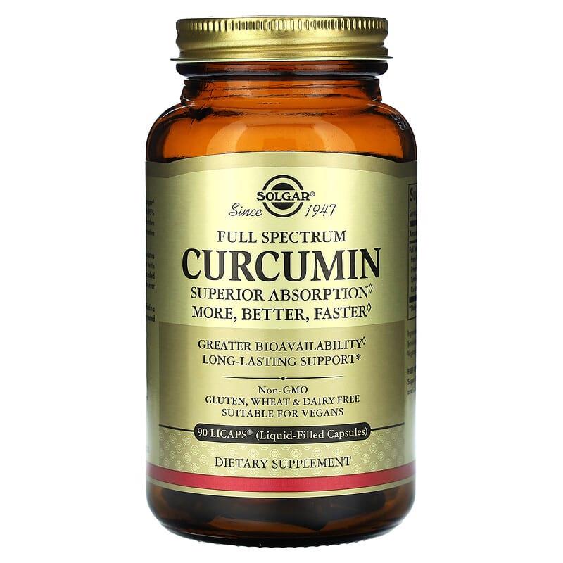 Основні переваги: Curcumin, Solgar, повний спектр, 90 гелевих капсул