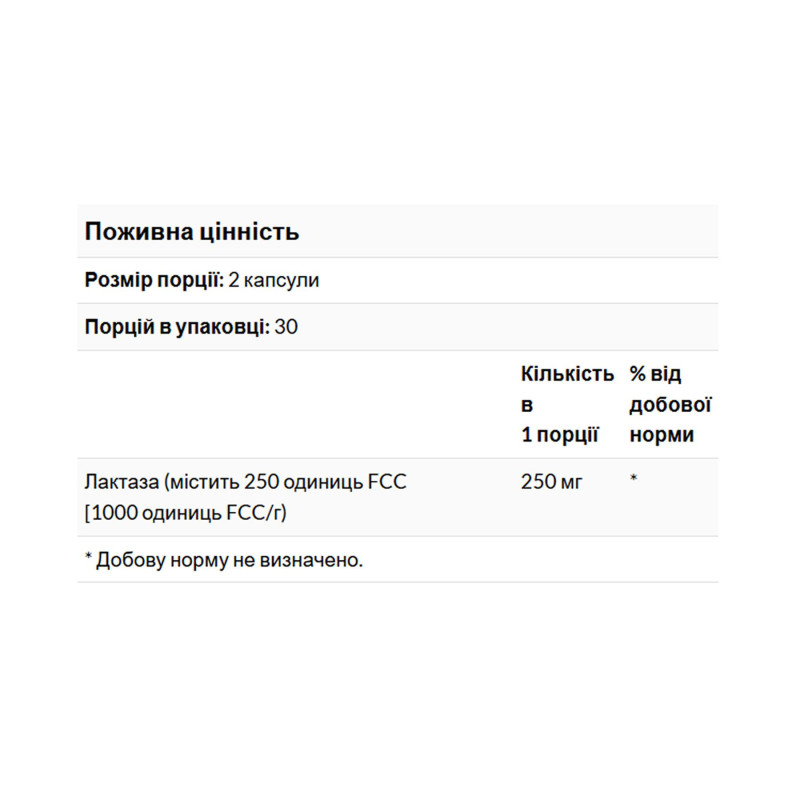 Зверніть увагу, що Lactase Enzyme 250mg - 60 softgels не є лікарським засобом. Не замінює повноцінного харчування. Не перевищуйте рекомендовану добову дозу. Використовуйте згідно з інструкцією виробника, яка є на упаковці або всередині неї.