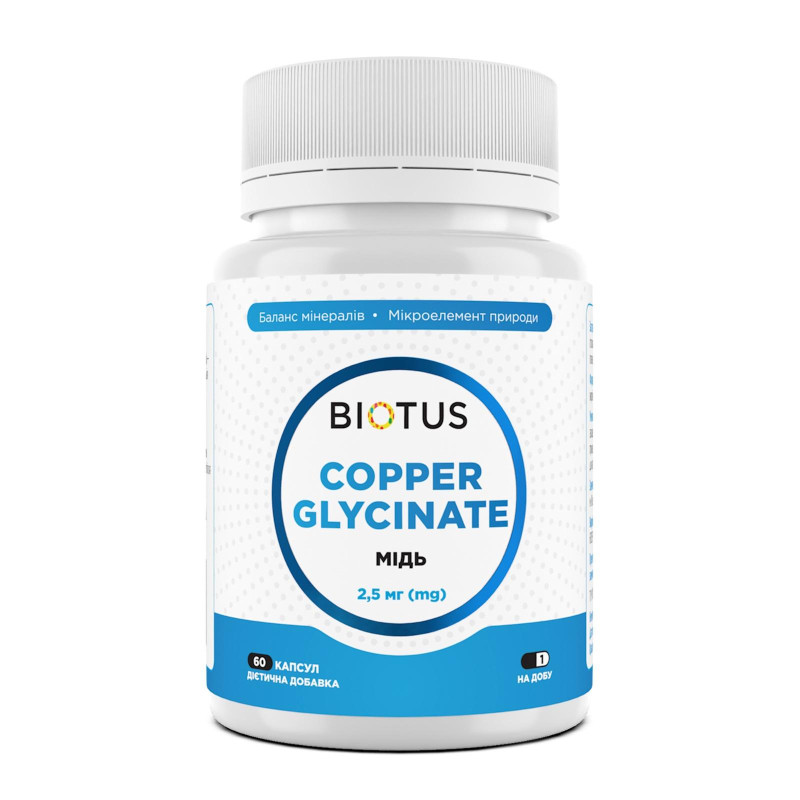 Основні переваги: Copper Glycinate, Biotus, 2.5 мг, 60 капсул