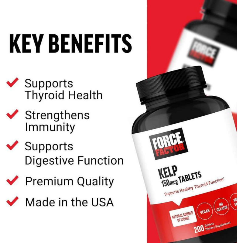 Kelp від Force Factor – це натуральне джерело йоду, отримане з морських водоростей. Йод необхідний для правильної роботи щитовидної залози, нормалізації обміну речовин і підтримки загального здоров'я організму.