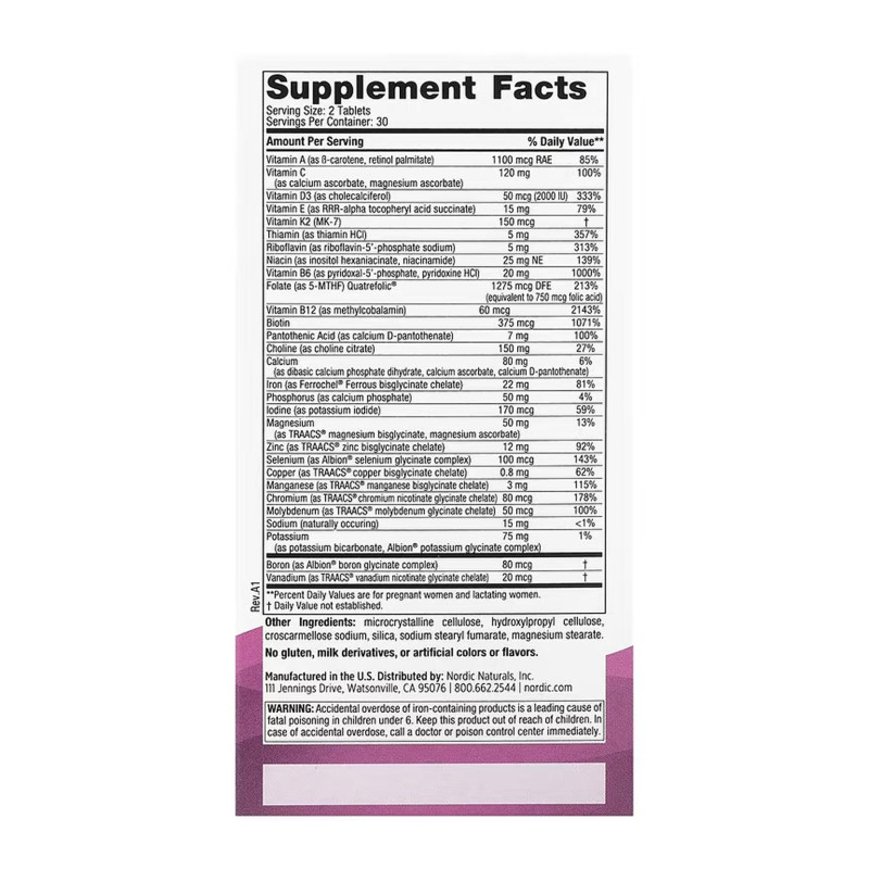Пренатальні мультивітамінні таблетки забезпечують поживну підтримку для здорової вагітності у біодоступних формах, які організм може легко засвоїти. Розроблені для задоволення підвищених потреб вагітності в поживних речовинах, ці таблетки забезпечують здорову дозу вітаміну B6, фолієвої кислоти, заліза у формі, що не викликає запорів і є безпечними для шлунка, а також хелатні мінерали для кращого засвоєння.