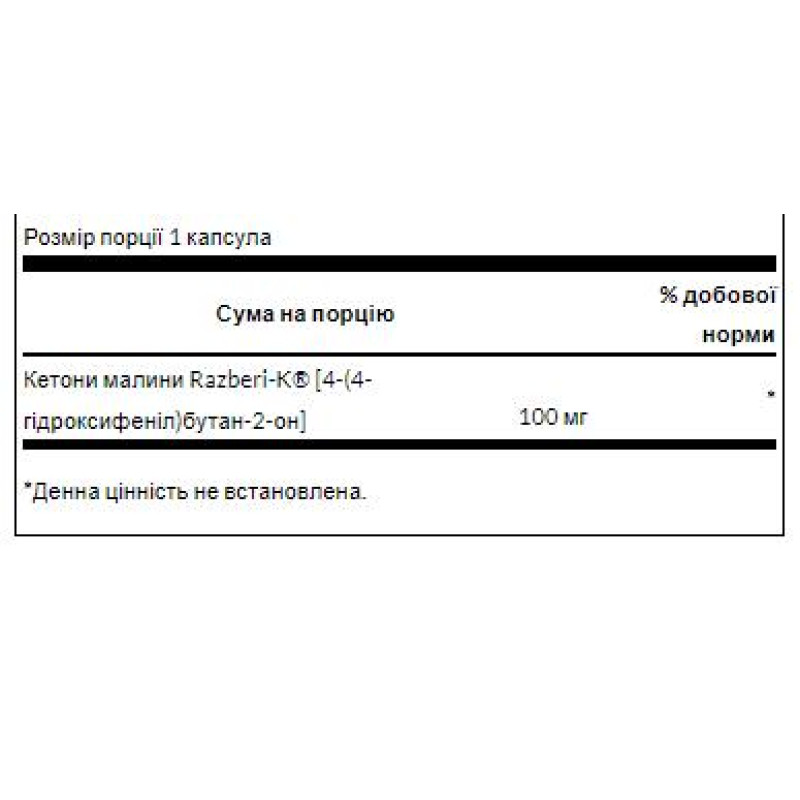 Зверніть увагу, що Razberi-K Raspberry Ketones 100mg - 60caps (До 01.26) не є лікарським засобом. Не замінює повноцінного харчування. Не перевищуйте рекомендовану добову дозу. Використовуйте згідно з інструкцією виробника, яка є на упаковці або всередині неї.