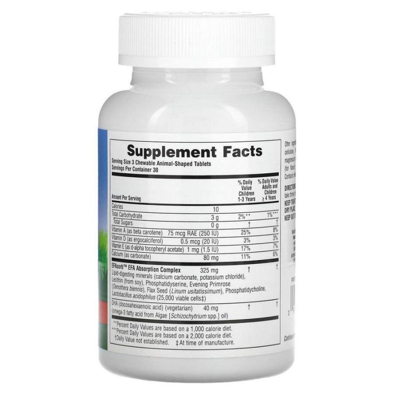Усього в трьох спокусливо солодких вишневих жувальних таблетках Animal Parade з ДГК міститься 40 мг незамінної омега-3 жирної кислоти ДГК, вітаміну A, вітаміну D та вітаміну E в кількостях, що точно відповідають потребам дитини в поживних речовинах. Кожна порція ДГК Animal Parade доповнена абсорбційним комплексом EFAsorb™ EFA для оптимальної активності. Тож спостерігайте, як ваші діти насолоджуються неймовірно смачним вишневим смаком, підтримуючи загальне здоров’я за допомогою ДГК від Animal Parade.