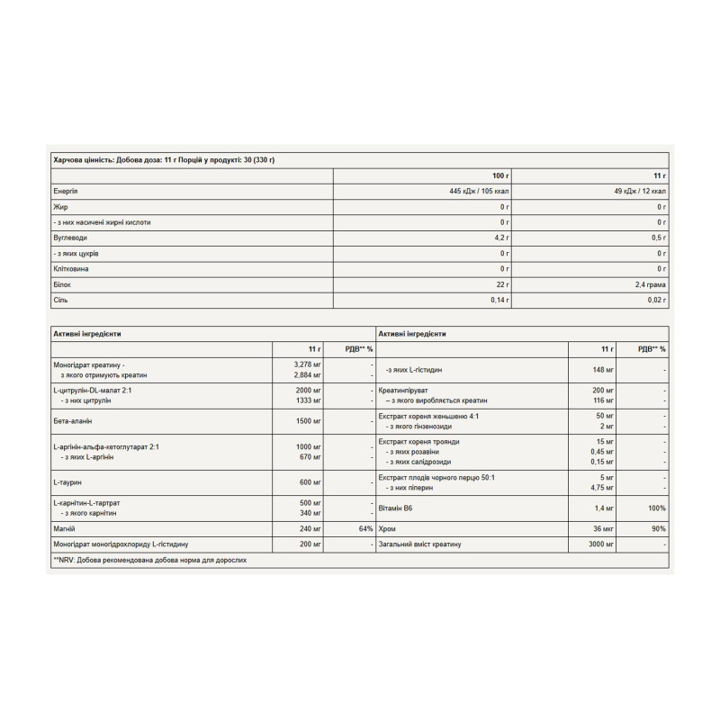 Мощный энергетический импульс – увеличивает производительность с первых минут тренировки.
