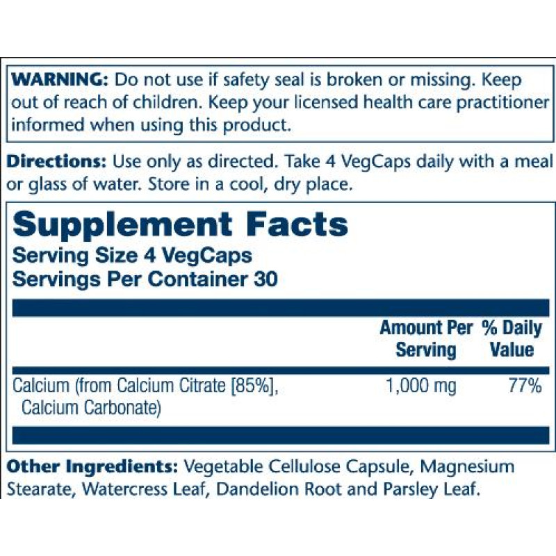 Solaray Calcium Citrate 1000mg - 120 капсул - это диетическая добавка, содержащая кальций в легкоусвояемой форме цитрата. Кальций важен для: