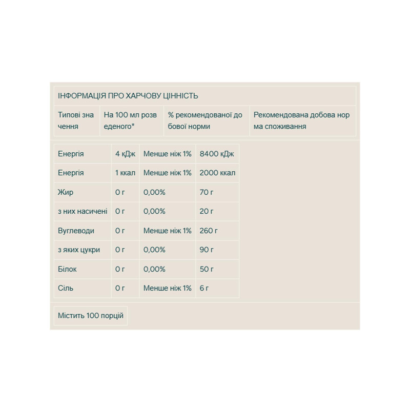 не содержит калорий;