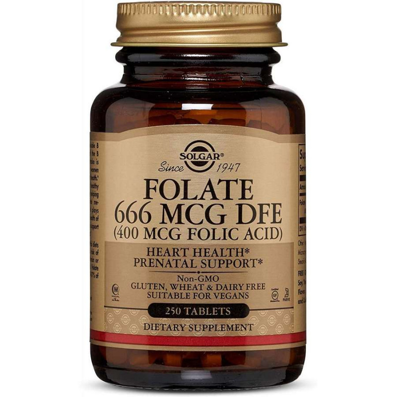 Folate 666 mcg от Solgar – оптимальное содержание активной формы фолиевой кислоты с высокой биодоступностью в одной таблетке позволит восполнить его нехватку в организме. Фолиевая кислота считается необходимой для беременных. Она способствует росту и обновлению клеток, улучшает работу мозга, сердца и сосудов, препятствует жировой инфильтрации печени. Folate 666 mcg кислота помогает женщинам оставаться молодыми и красивыми. Она обновляет луковицы волос, замедляет процесс образования морщин, способствует очищению кожи от высыпаний.