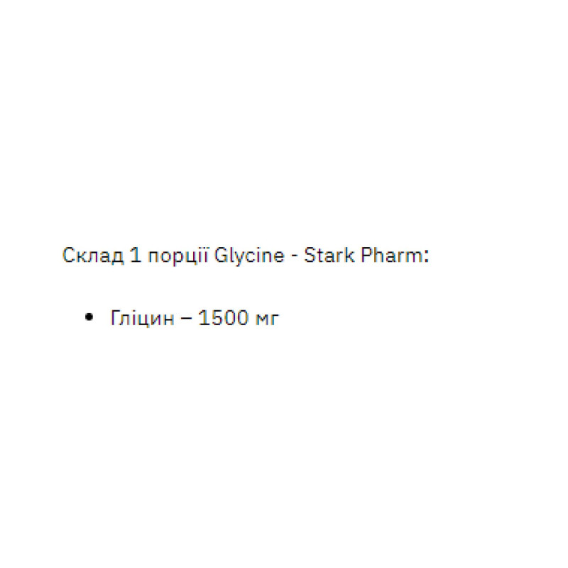 Пищевая добавка Stark Glycine - Stark Pharm содержит глицин, является нейромедиаторной аминокислотой, проявляющей параллельное дуалистическое действие. Глициновые рецепторы есть во многих участках головного и спинного мозга. Связываясь с рецепторами (кодируемые генами GLRA1, GLRA2, GLRA3 и GLRB), глицин вызывает «тормозящее» влияние на нейроны, уменьшает выделение из нейронов «стимулирующих» аминокислот, таких как глутаминовая кислота, и повышает выделение ГАМК.