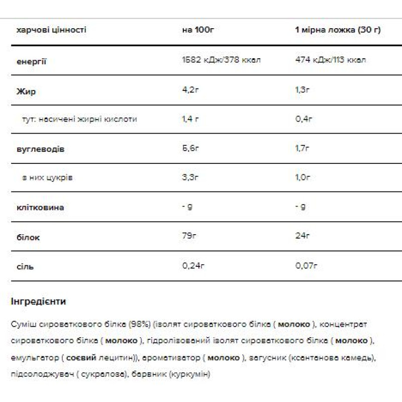 Изолят сывороточного протеина является одной из чистейших форм сывороточного белка. Каждая порция продукта содержит 24 г быстро усваивающегося сывороточного протеина с минимальным содержанием жира, лактозы и других ненужных компонентов.
