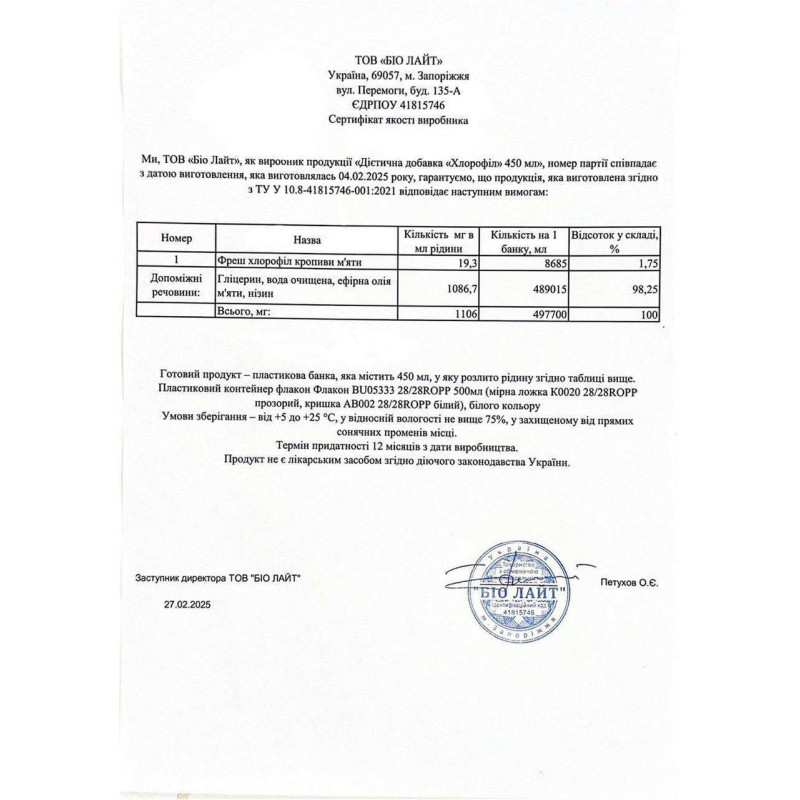 Обратите внимание, что Хлорофилл Sporter Clorophyll liquid 450 мл не является лекарственным средством. Не заменяет полноценное питание. Не превышайте рекомендуемую суточную дозу. Используйте согласно инструкции изготовителя, которая находится на упаковке или внутри нее.