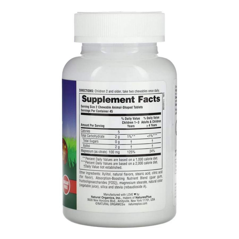 Nature's Plus Animal Parade MagKidz обеспечивает получение полезного, натурального, жизненно необходимого магния в форме вкусных и веселых конфет, которые понравятся детям. Часто не учитываемый в диетах детей магний необходим для расслабления мышц. MagKidz является прекрасной формой магния для успокоения мышц, а также для крепости и здоровья костей, нормального роста и развития, а также общего хорошего самочувствия.