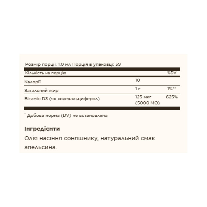 Обратите внимание, что Liquid Vitamin D3 (Cholecalciferol) 125 mcg (5,000 IU) - 59ml Natural Orange не является лекарственным средством. Не заменяет полноценное питание. Не превышайте рекомендуемую суточную дозу. Используйте согласно инструкции изготовителя, которая находится на упаковке или внутри нее.
