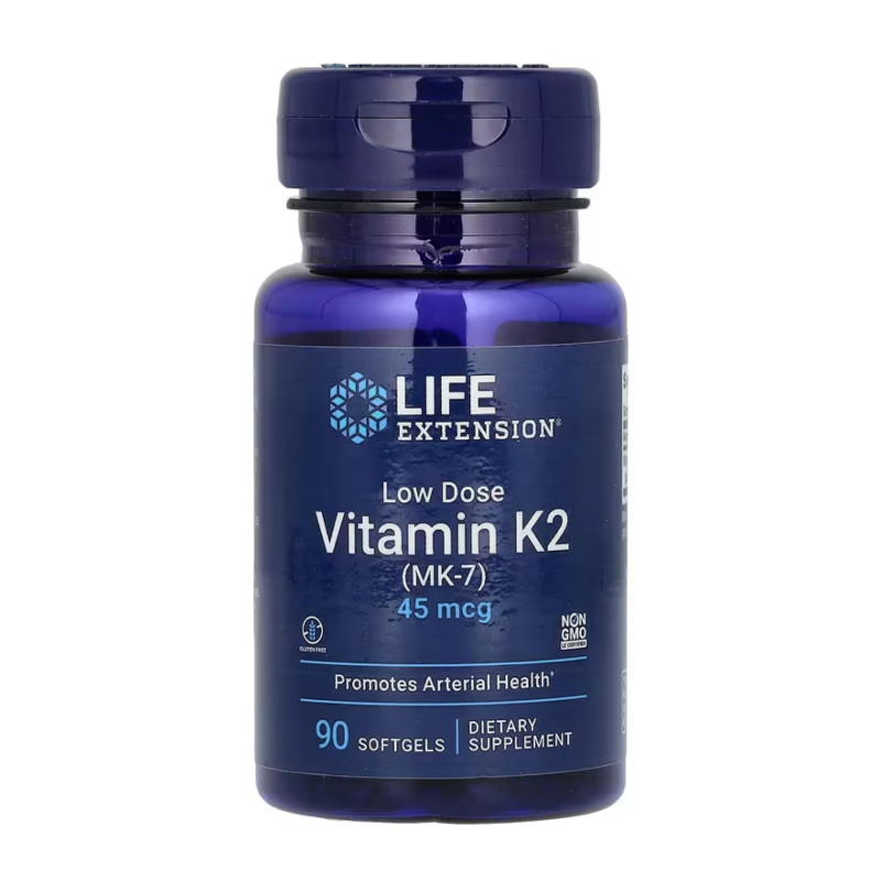 Добавка с низкой дозой витамина K2 содержит менахинон-7 (MK7), медленно распадающуюся форму витамина K2. Это делает MK7 более доступным и обеспечивает более стабильное снабжение организма витамином K.