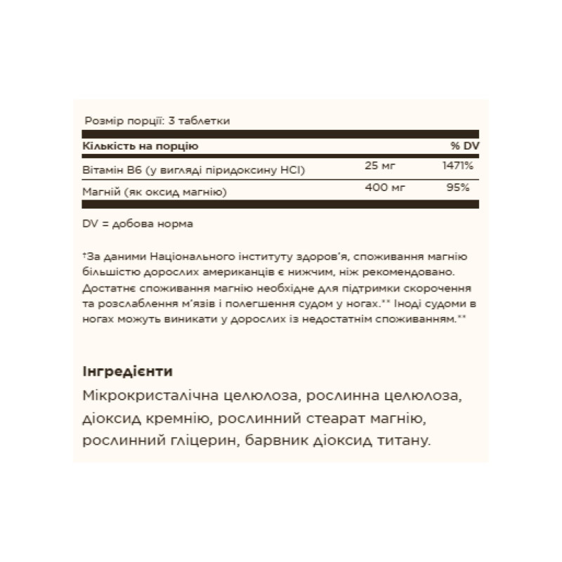 Магний – это важный минерал, необходимый для сотен основных функций в вашем теле. Витамин B6 поддерживает здоровье нервной системы и энергетический обмен.