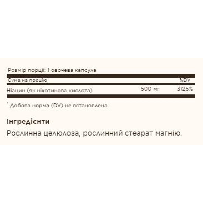 Ниацин/витамин B3 является водорастворимым витамином и входит в состав комплекса B. Он необходим для метаболизма углеводов и белка в энергии. Ниацин также поддерживает здоровье сердечно-сосудистой системы, улучшает кровообращение и поддерживает здоровье нервной системы.