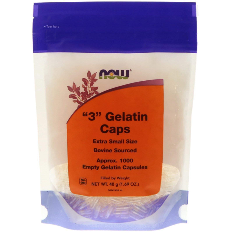 Инструкция по применению: "3" Gelatin Caps, Now Foods, очень маленького размера, 1000 пустых желатиновых капсул (48 г)