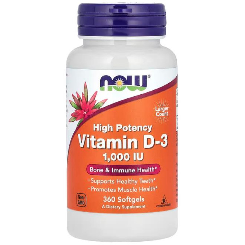 Основные преимущества: Vitamin D-3, NOW Foods, 25 мкг (1000 МЕ), 360 гелевых капсул