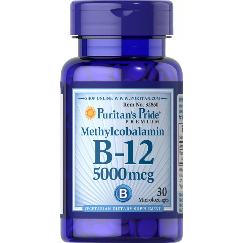 Puritan's Pride, Methylcobalamin Vitamin B-12, 5000 mcg, 30 Microlozenges.