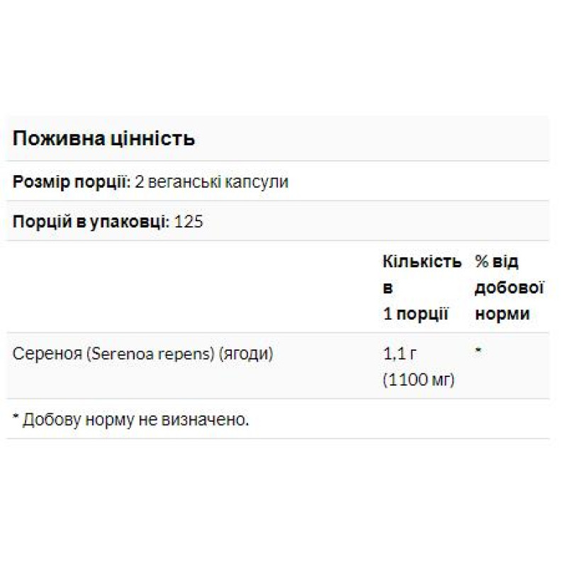Екстракт ягід Пальметто (плоди) – 1,1 г (1100 мг)