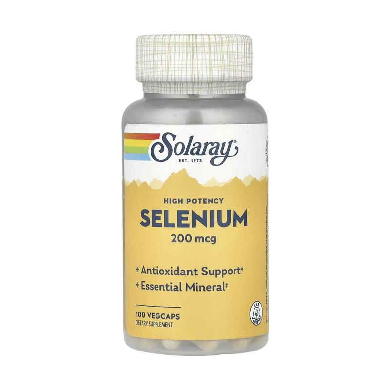 Selenium 200 mcg High Potency від Solaray – дієтична добавка, джерело селену, важливого мікроелемента, що бере участь у захисті клітин від окислювального стресу та підтримці нормального функціонування імунної системи.