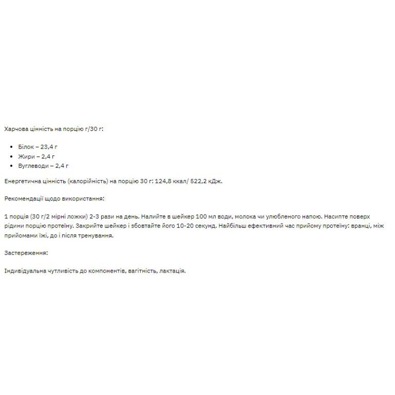 Енергетична цінність (калорійність) на порцію 30 г: 112 ккал/468,6 кДж