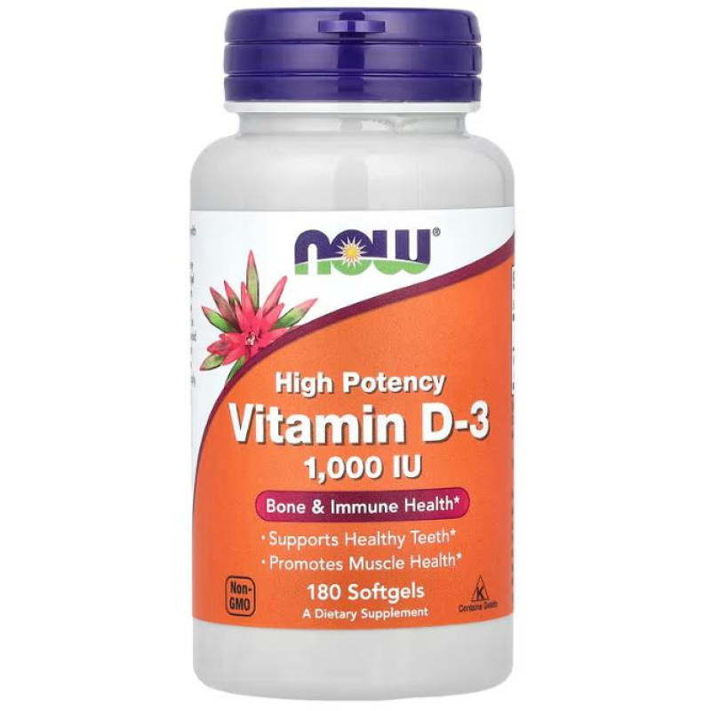 Основні переваги: Vitamin D-3, NOW Foods, 1000 МО, 180 гелевих капсул