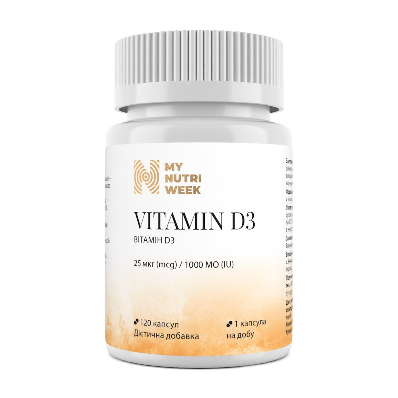 Основні переваги: Vitamin D3, My Nutri Week, 25 мкг (1000 МО), 120 капсул
