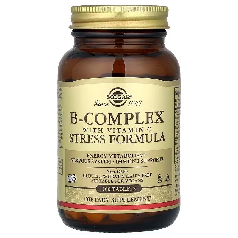 Основні переваги: B-Complex with Vitamin C, Solgar, стрес формула, 100 таблеток